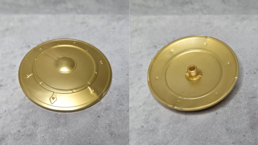 まずはコチラ、シールドです。ものとしてはディテールや大きさが違うだけで大まかな形状や用途はファイターのものと同じラウンドシールド。こぶりなのでバックラー的な軽盾として扱うことも出来そうですね。