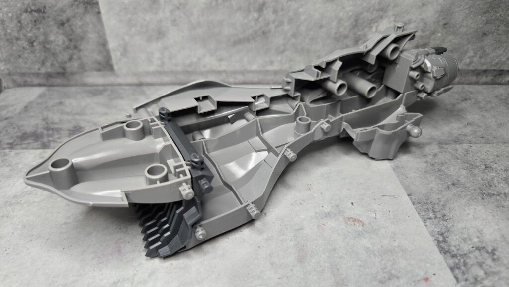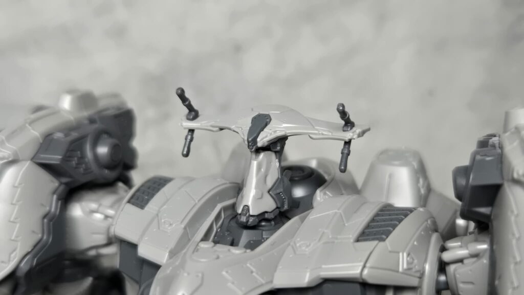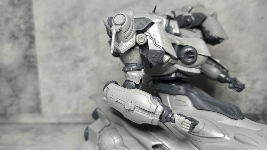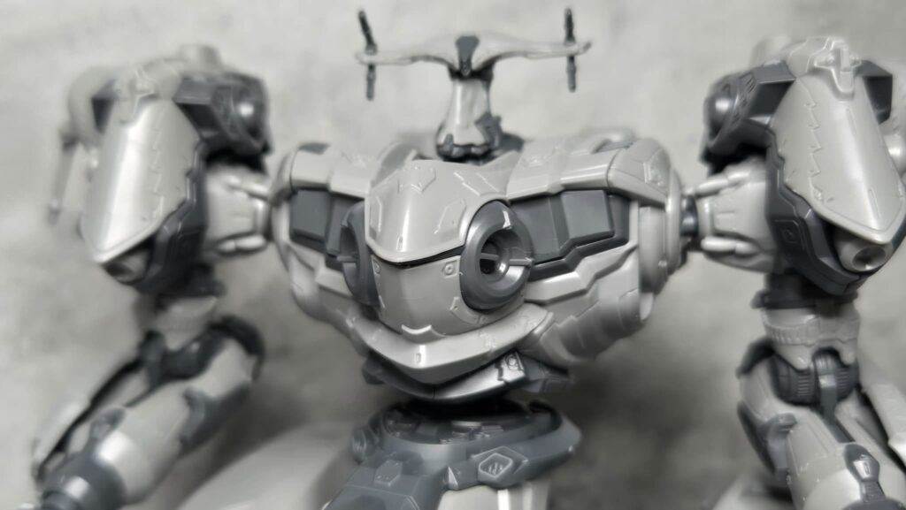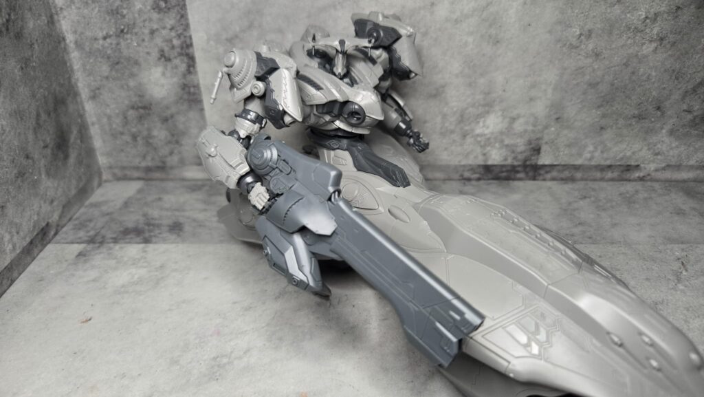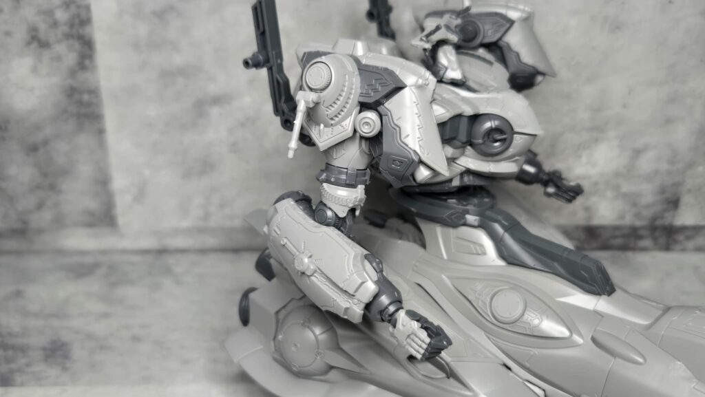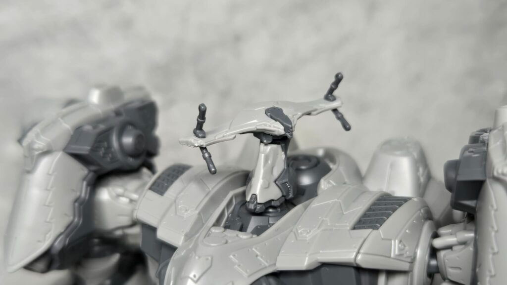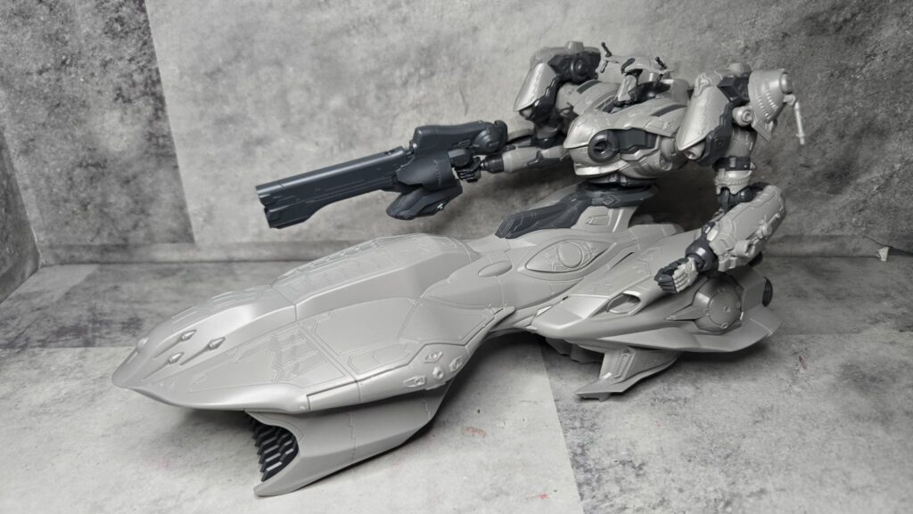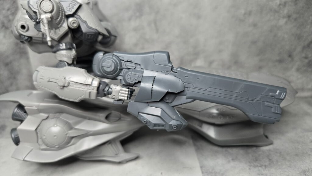 所属によるものなのかは不明ですがオープンフェイスとも共通するいくつかの部位を塗装や改造向きのグレー成形で引っ提げてきた上半身、もはや宇宙戦艦!なシルエットをしている下半身のホバータンクと、新要素とカスタムに嬉しい要素を同時に持っている素材として光るものを持つアイテムとなっていましたね。