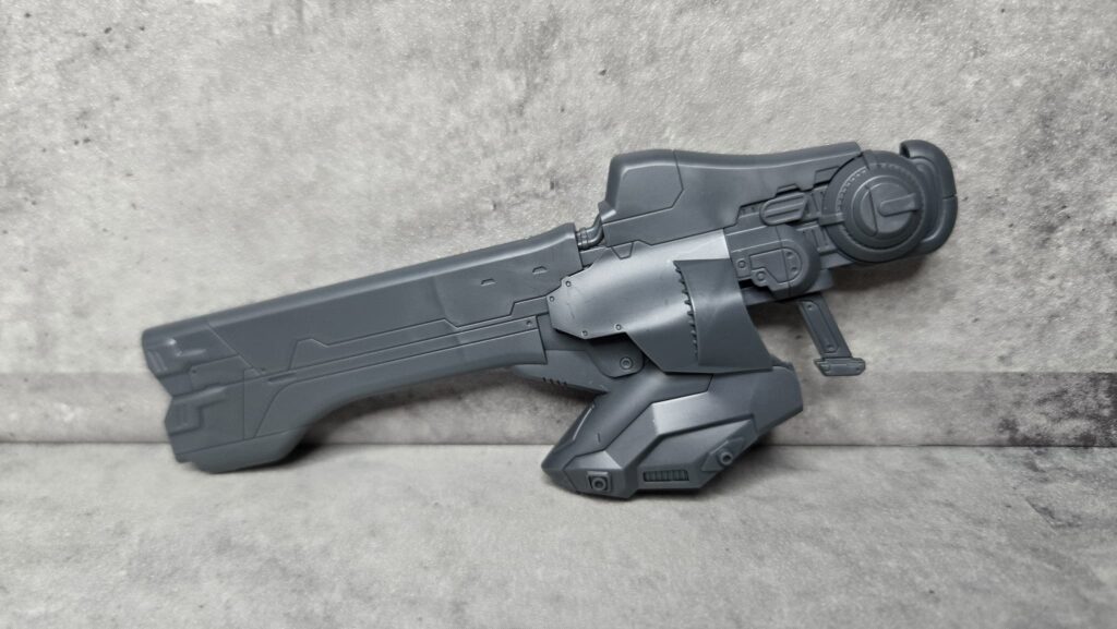 ほぼおまけのような形ですが、武装枠として一点だけライフルが収録されています。元々モナカ合わせの段階でかなーり分厚くなるのですが、そこにさらに装甲などを被せていくため、組み立ての簡単さに見合わずなかなかのボリュームとなっています。