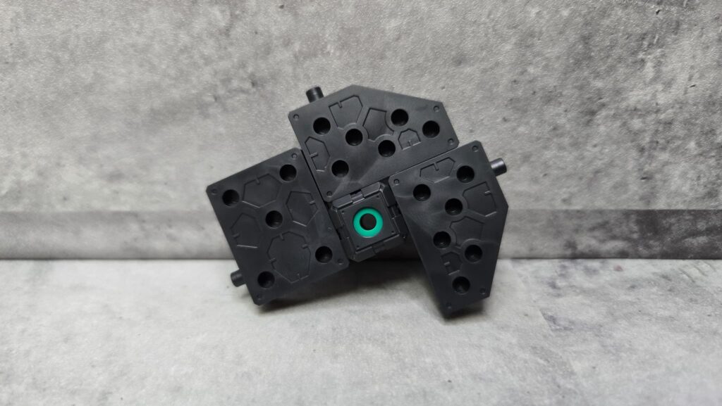まずは基礎部分を作っていくのですが、ブレイブのほうにもあった6方向に3ミリ穴をあけているキューブジョイントですが、ここにさっそく新しい要素が含まれています。