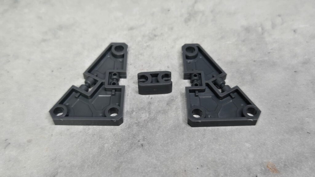 もう一組も同じように組んでいくのですが、今回はピン付きのパーツの方を使い拡張性を付与することに。このピンと腕まわりのジョイントを組み合わせてシールドとして使えるようにする予定ですが、まだまだ3ミリ穴は他に多いのでそちらを使うようにしてもいいかもしれませんね。