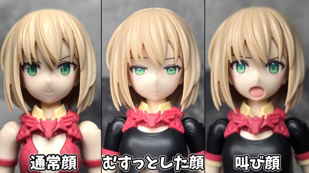 表情パーツは通常顔、なんかむすっとした感じの顔、叫び顔(困惑顔?)の3種類が収録されています。タンポ印刷も輝度の向上、細部の描きこみの増加などさらに高品質になっているのも驚きですね…!