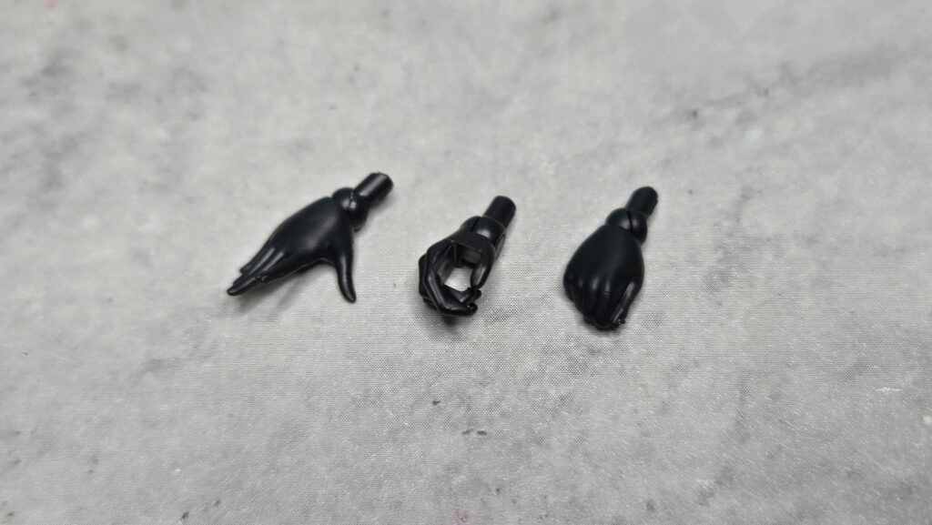ハンドパーツは武器持ち手、握り拳、平手の3種類が収録されているスタンダードな仕様です。一部内容がかぶりますが、手軽にラインナップを増やしたい場合はまだお店に在庫として眠っていることが多いハンドパーツセットを利用するのもいいかも?