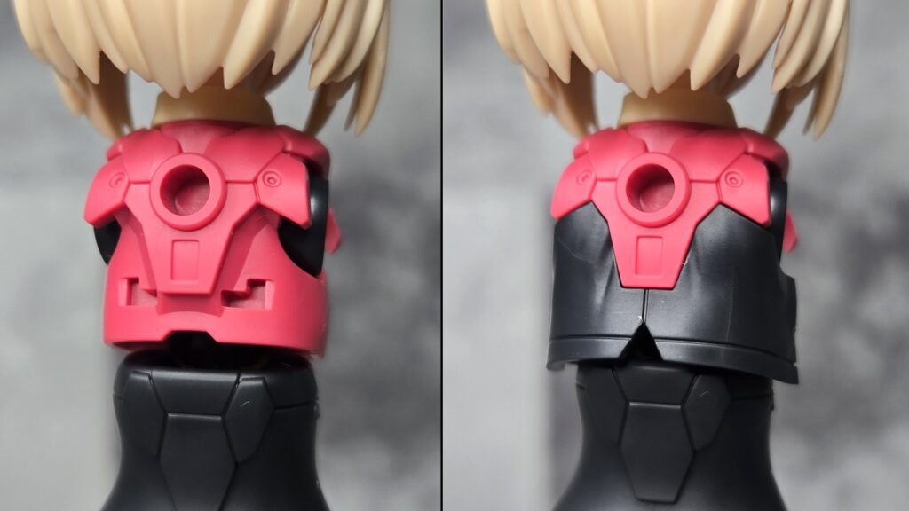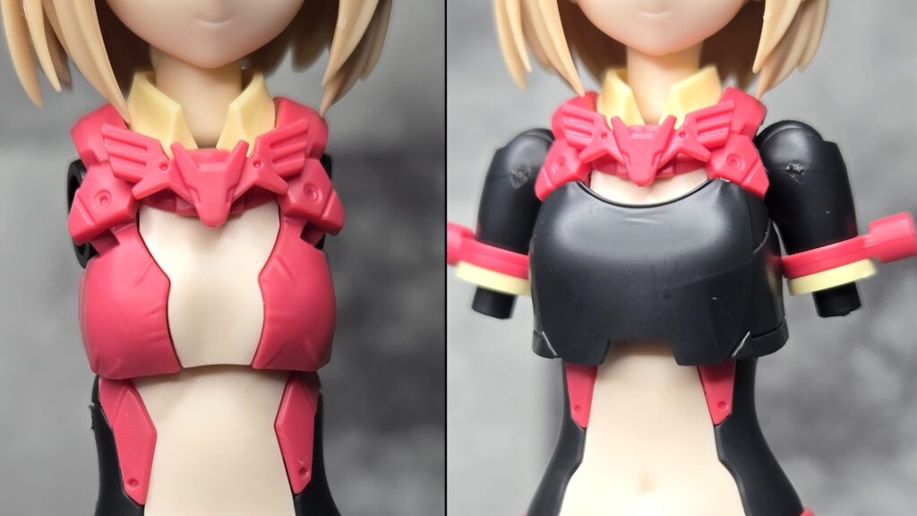 これと後述の武装用肩パーツを装備することで、胸部周りを半袖の黒インナー的な感じの見た目にすることができるので、ここまで組むとさらにティアーシャっぽさがアップします!