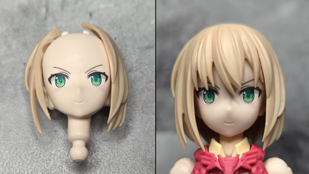 まずはヘッドパーツ。ティアーシャ…といわず、初期のキットは意外と互換性が考慮されていないつくりになっているものが結構多かったのですが、ティアーシャヘアともいえるミディアムヘアタイプのヘアもその一つでした。